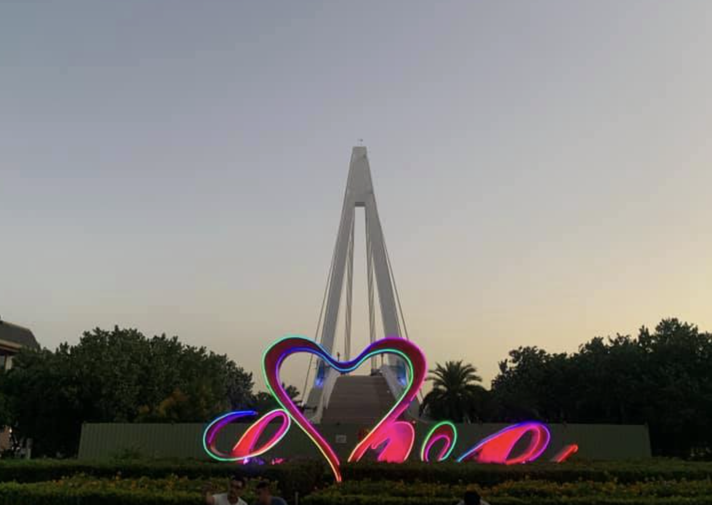 現在,我牽著太太的手,漫步在橋上。聽著她對淡水的種種好奇,我有問必答。