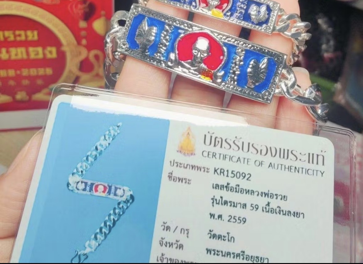 更誇張的是,居然還仿製「薩瑪空保證卡」,然後一堆簡體中文的介紹,標榜是佛曆2559年師父生前加持的,真的很敢做。最好一條2559年的只要1250NTD,真品你就算尾數加個零恐怕都還不一定買得到。